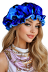 “介绍我们最新的痴迷产品:蓝色迷彩双面睡眠缎面波浪帽!😍✨